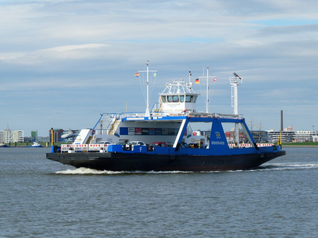 Vom Weserstein aus müssen wir ein paar Kilometer zum Fähranleger in Nordenham zurückfahren. Eine knappe Viertelstunde dauert die Fahrt mit der Fähre, dann sind wir in Bremerhaven. Von Anleger aus sind nur noch drei Kilometer bis zu unserem Hotel am Neuen Hafen. Ziel erreicht. Weser-Radweg geschafft. 500 km. Fertig.